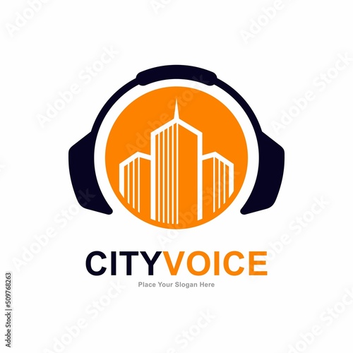 Earphone or headphone city or town logo vector template. Suitable for business, entertainment, information, and building