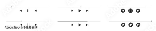 Music or video play interface bar icon, voice record display. Podcast playlist, play button. Song simple equalizer, record.