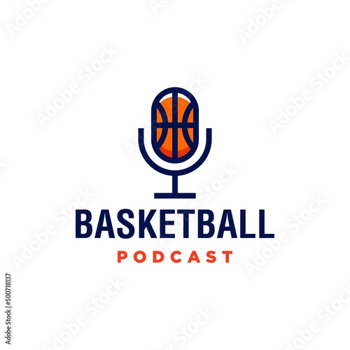 basketball podcast with ball and microphone combination icon logo illustration design. modern line art outline spprt show logo