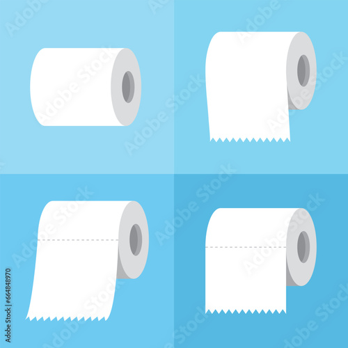 Toilet paper vector icons set: black and white bathroom, hygiene roll designs