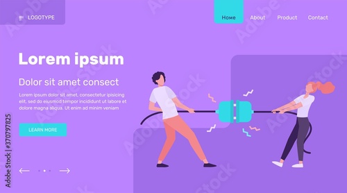 Tug Of War, people pulling a rope in opposite directions - Illustration