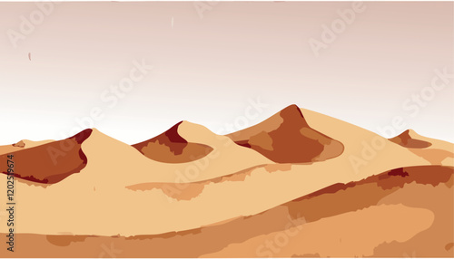 Explore the arid desert landscape vector illustration with sand dunes and sparse vegetation graphic design