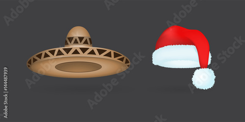 Collection of red Santa hats and silhouettes Christmas