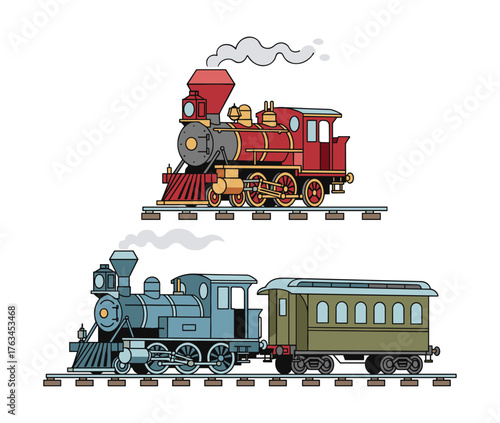 Historic Steam Locomotive and Train Vintage Illustration for Creative Projects