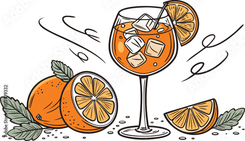 Hand drawn aperol spritz illustration
