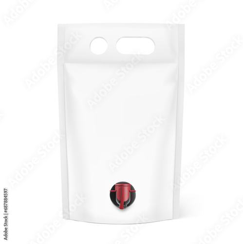 Stand up bag with butterfly tap for juice or wine. Vector illustration isolated on white background. Easy to use for presentation your product, idea, promo, design. EPS10.