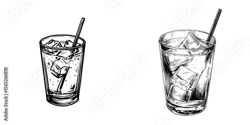 Black and white illustration of a refreshing iced drink with citrus and mint