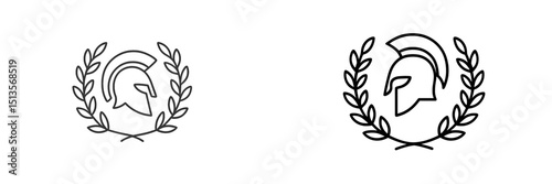 Stylized black and white warrior helmet with plumed crest emphasizing strength and tradition