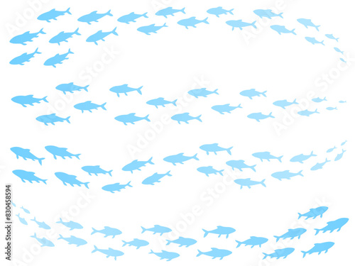 水色の斜めの波と魚の群れのシルエットのフレーム