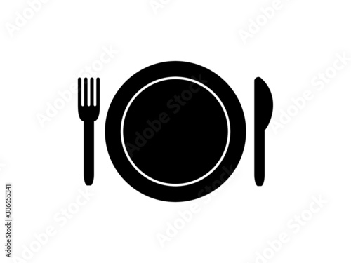 Illustration of cutlery and plate icons isolated on white background