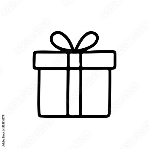 Minimalist line drawing of gift box with ribbon isolated on white background
