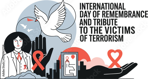 Vector art of a poignant illustration pays tribute on the international day of remembrance and tribute to the victims of terrorism, conveying peace and solidarity