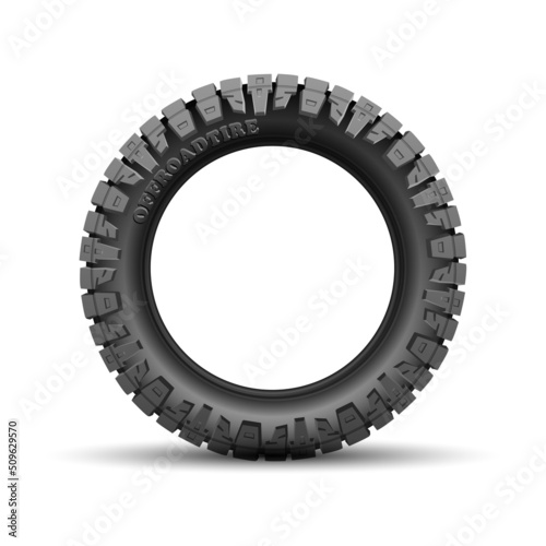 Realistic tire banner. Car wheel repair and auto rubber advertising flyer, automobile information brochure with tyre sale offer. Vector image quality auto service promo poster