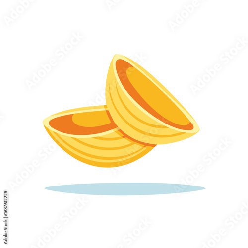 Vector illustration of two uncooked conchiglie pasta shells sliced in half. Italian cuisine ingredient icon.