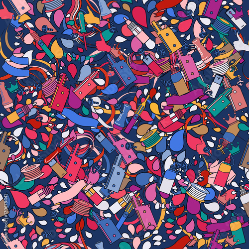 Endless vape background. Vector seamless pattern of vape and accessories.
