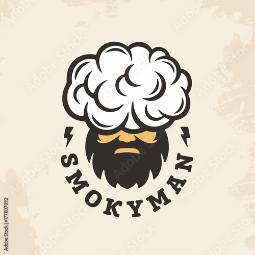 Hipster with vape and cloud. isolated vaper men on black vector background. Hand-drawn hipster dude with mustache and beard. Electronic Cigarette. Vector. Sticker