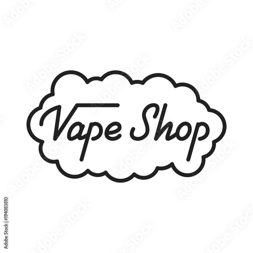 Vector hand drawn inscription Vape shope and cloud. Line isolated word. Stickers, logo, Emblem
