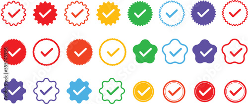Verified badge icon set, tick social media, Check and Approved, Accept, Instagram verified badge icon, vector illustration eps 10.