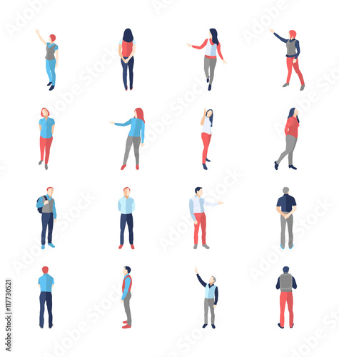 Cute strolling people, isolated set of men and women walking calmly. Vector young teenagers and children, adults and parents going to work or school. Fashionable personages with accessories and bags