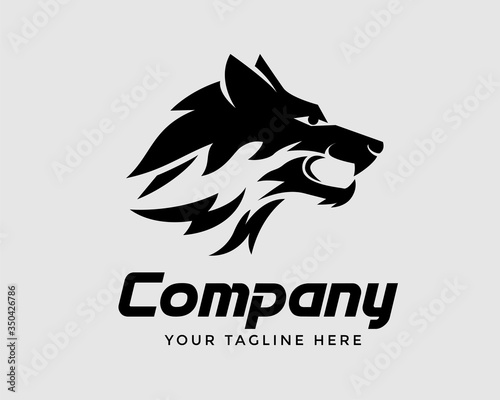 Wild wolf logo design. Vector illustration of angry wolf with a side view icon design. Modern logo design with line art style.