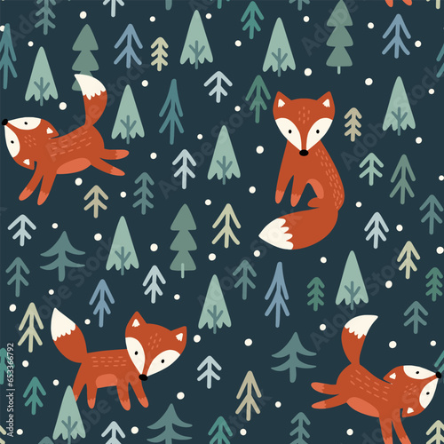 Happy new year and xmas tree seamless pattern illustration. Concept Christmas textile and wrapping paper vector motif.
