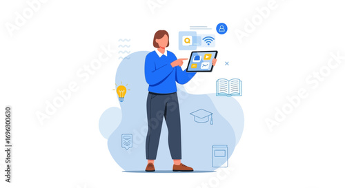 10000 followers, happy blogger celebrating blog goal achievements, flat vector illustration. 10k social media subscribers. Blogging.