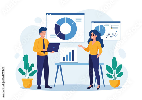 10000 followers, happy blogger celebrating blog goal achievements, flat vector illustration. 10k social media subscribers. Blogging.