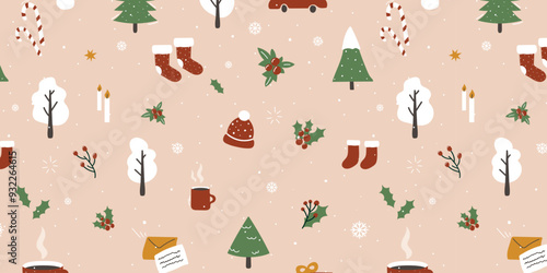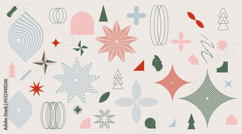 2024 Happy New Year colorful poster or web banner vector illustration design with xmas fir trees and branches in modern minimalist style