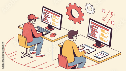 3d modeler, artist creating three dimensional digital design using computer software, vector flat isometric illustration. Male freelancer, making 3d model of object.