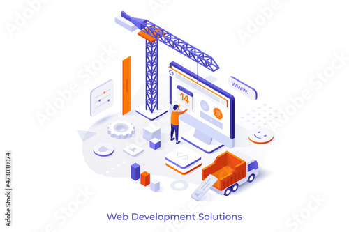 3d printer modeling vector website template, web page and landing page design for website and mobile site development. 3D printing software for preparing three-dimensional models to print.