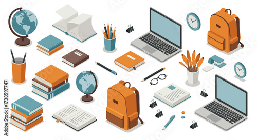 5g cellular network isometric icon set, flat vector isolated illustration. Satellite, communication tower, data center, router, smartphone, laptop computer, car, rocket. Wireless high speed internet.