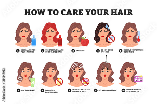 Contact lens use instruction. Seven step to put in contact lenses vector poster. Medical eye care, hygiene and ophthalmology concept