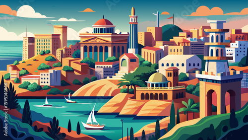 Abandoned city buildings vector cartoon illustration. People left town after earthquake or apocaliptic disaster. City house with broken walls and commercial property. Damage zone after violent riots.