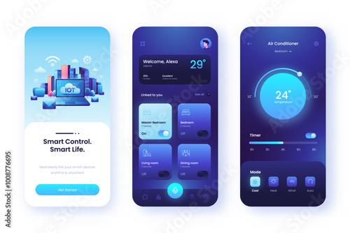 Abandoned city buildings, hungry dog roaming deserted streets. War zone, disaster. Mobile app screens. Vector banner template for website and mobile development. Web site and UI design illustration.