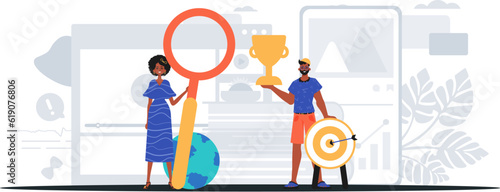 About us, vector flat style design illustration. About us, company information page with business history including awards and recognition achieved concept for web banner, website page etc.