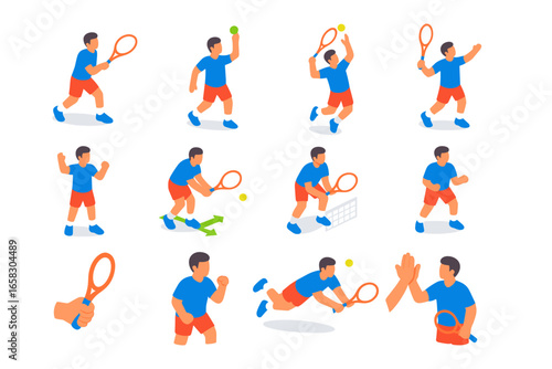 Adults and kids standing, sitting in different poses, isometric icon set, flat vector isolated illustration. Office people, lab technicians, children with laptop, mobile phone, tablet, pencil.