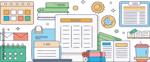 Adults embracing new technologies vector poster template set. Adult people use mobile phone, tablet, laptop computer to stay informed, to connect to friends, family and for other reasons.