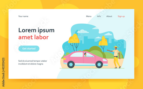 Adventure travel concept. Ancient ruin landmark. Safari in africa. Vector web site design template. Landing page website concept illustration.