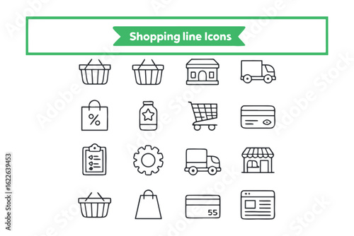 Advertising line icon seamless pattern isolated on white backdrop. Product promotion endless background with minimal marketing signs. Web site wallpaper with outline vector icons for business theme