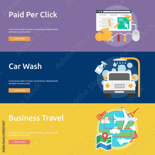 Advertising web site and mobile app onboarding screens. Menu banner vector template for website and application development with blue abstract shapes. Smm, seo, coupon, online advertising campaign.