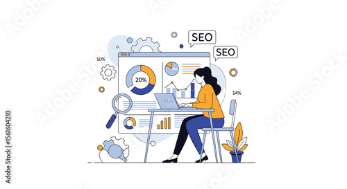 Woman using AI chatbot translator, flat vector illustration. Artificial intelligence foreign languages translation, online support.