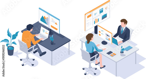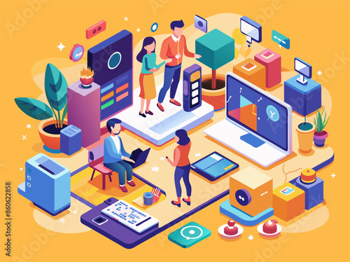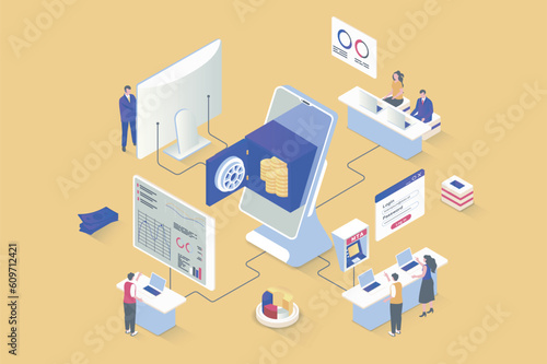 Artificial intelligence machine learning technology concept. Vector isometric illustration.