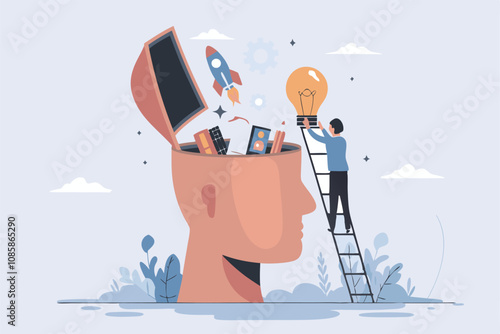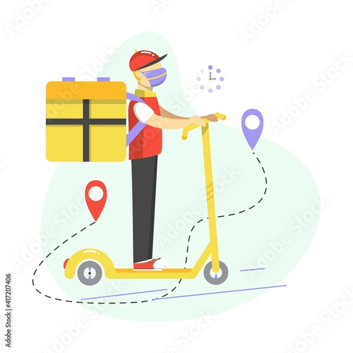 AI Robot helping man farmer in planting process in garden vector illustration. Automated farm life, innovative future technologies and smart farming concept