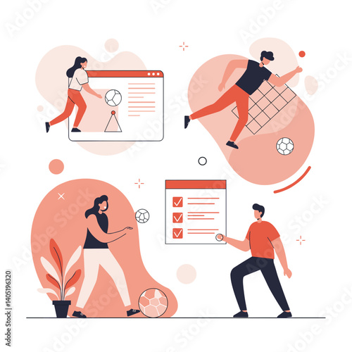 Huge air conditioner and remote control, micro characters air-conditioning repairs and maintenance crew, vector illustration. Air conditioning services and maintenance composition for website page etc