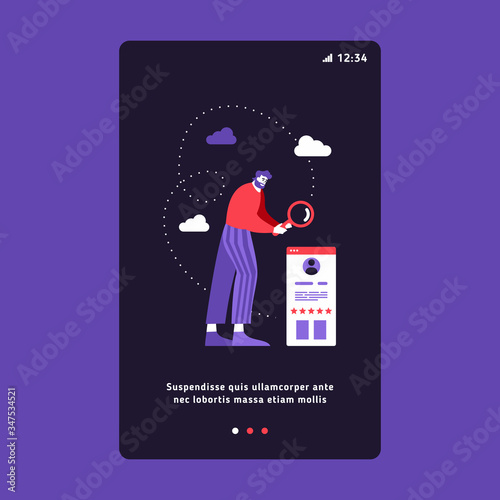 Vector illustration of security guard scanning passenger with metal detector. Airport terminal, security checkpoint concept design element in flat style.