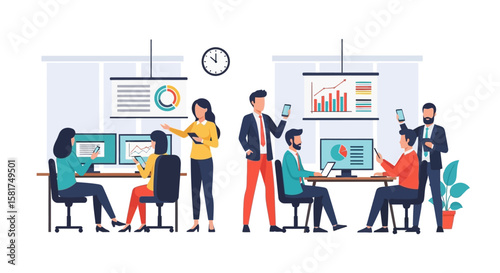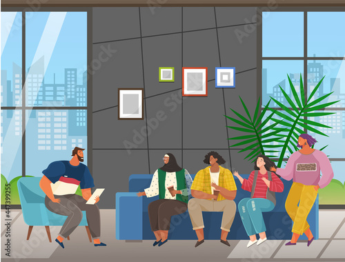 Airport security control and customs concept vector illustration. Security staff check passengres and x-ray luggage. People travel by flight. Airport safety checkpoint.