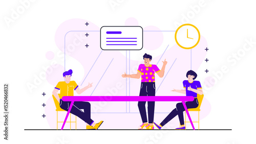 Airport departure and arrivals concept vector illustration. Plane, tourists male and female characters with ticket, luggage, suitcase. Airlines services, travel by air composition for web banner etc.