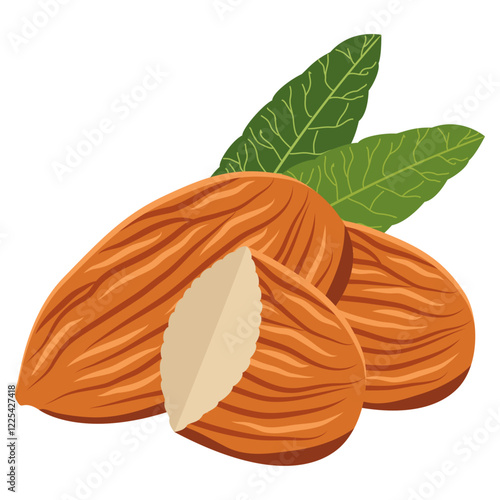 Almond and mint leaves in milk flow vector icon. Advertising mockup 3d design isolated on white background