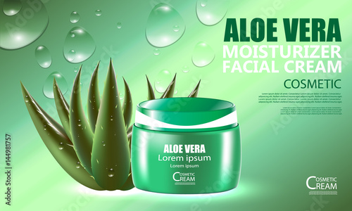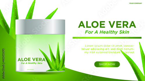 Aloe vera skin care cosmetic vector advertising poster design template. Beauty cosmetic product brand promotion composition with copy space.
