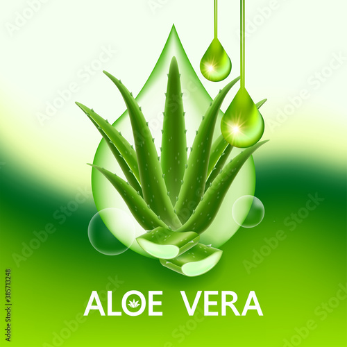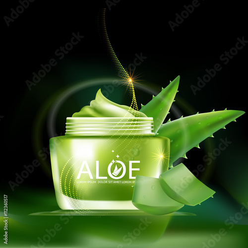 Realistic aloe vera succulent plant and aloe vera cream, vector illustration. Natural and organic cosmetic and skincare products composition for poster, banner etc.